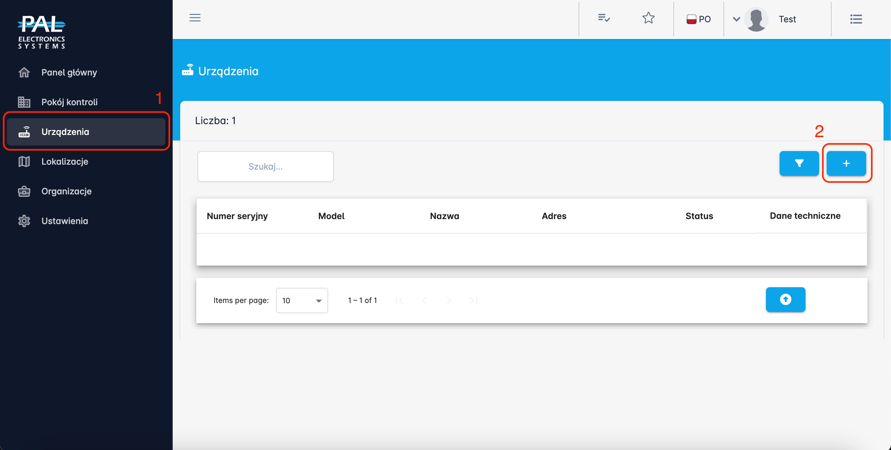 - Następnie kliknij przycisk "+" (Dodaj nowe urządzenie).