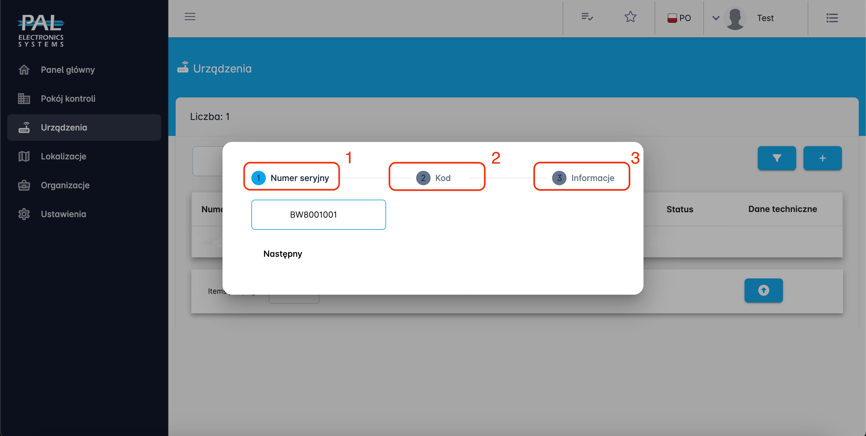 - Wprowadź numer seryjny sterownika (znajduje się z tylnej strony modułu oraz na opakowaniu).