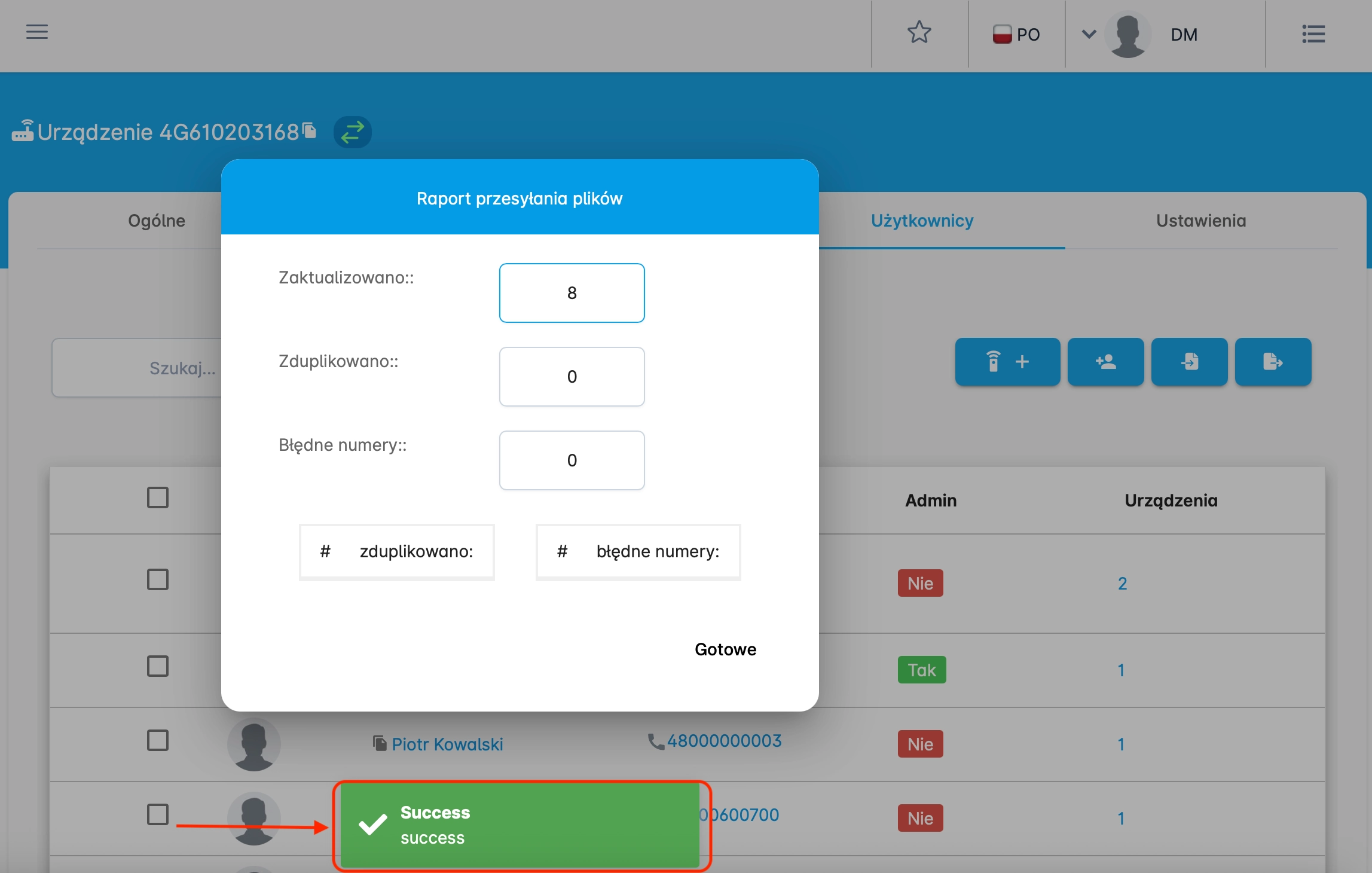 W przypadku pomyślnego importu danych system wyświetli odpowiedni komunikat.